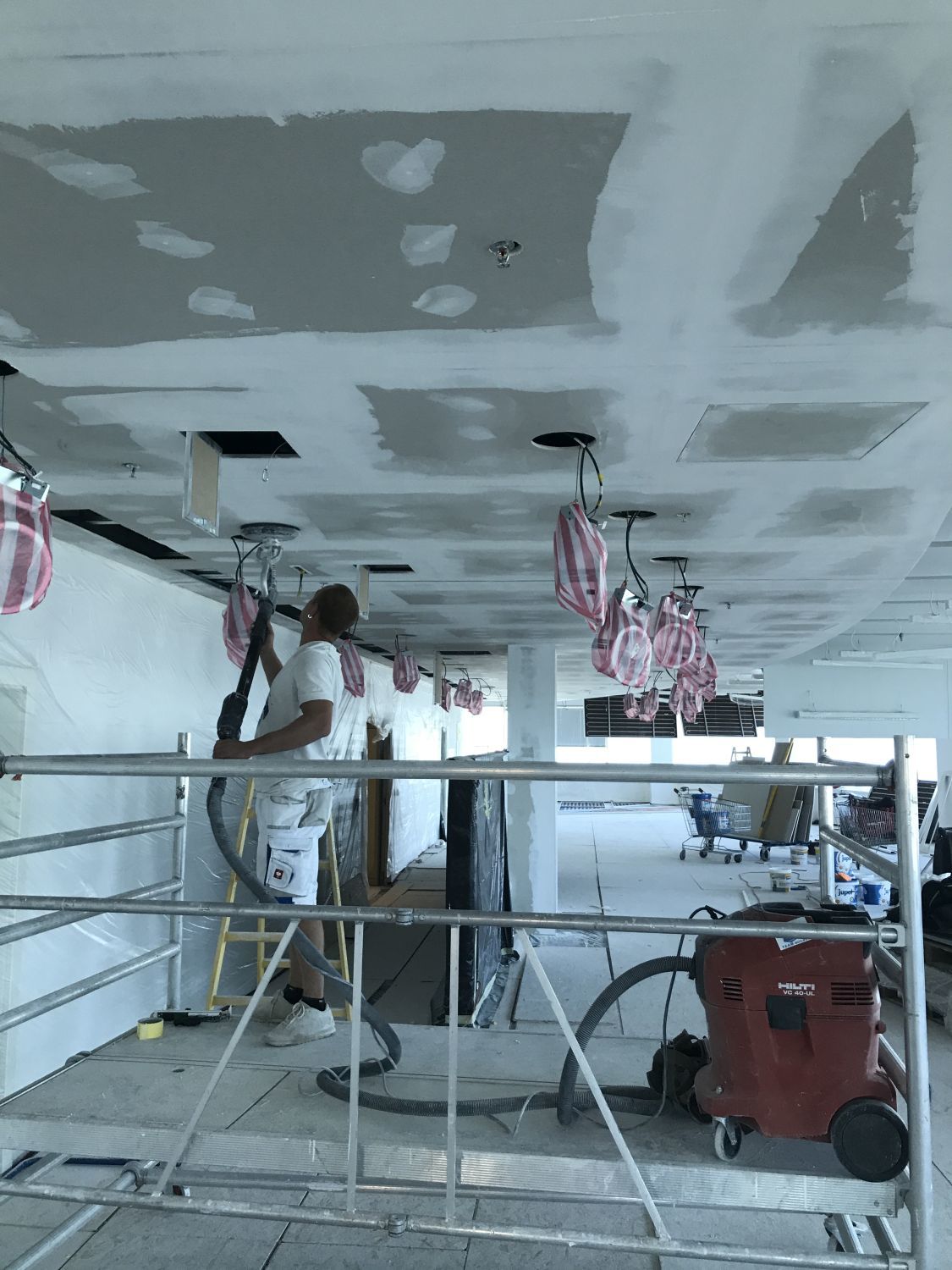 | Realizované práce: | -demontáž chladiacich trámov -demontáž SDK podhľadov -realizácia nových SDK podhľadov -maľby -zabezpečenie častí, ktoré sa netýkajú rekonštrukcie ochrannými prvkami |